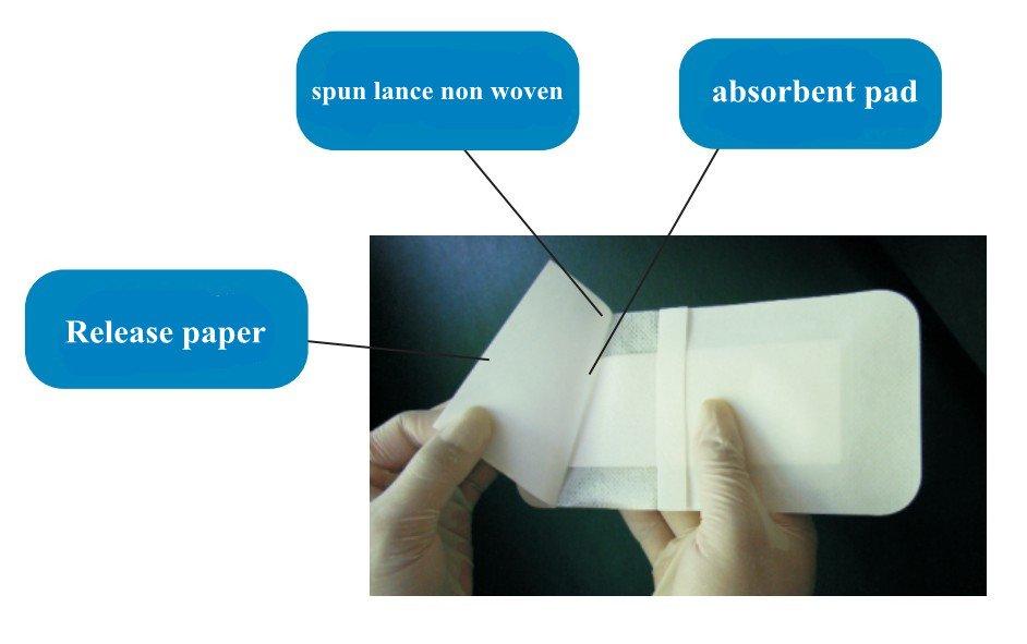 1.Take the non woven adhesive dressing out of the sterile package and peel off the release paper.